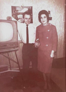 Mes parents, avec leur nouveau poste de télévision 1968