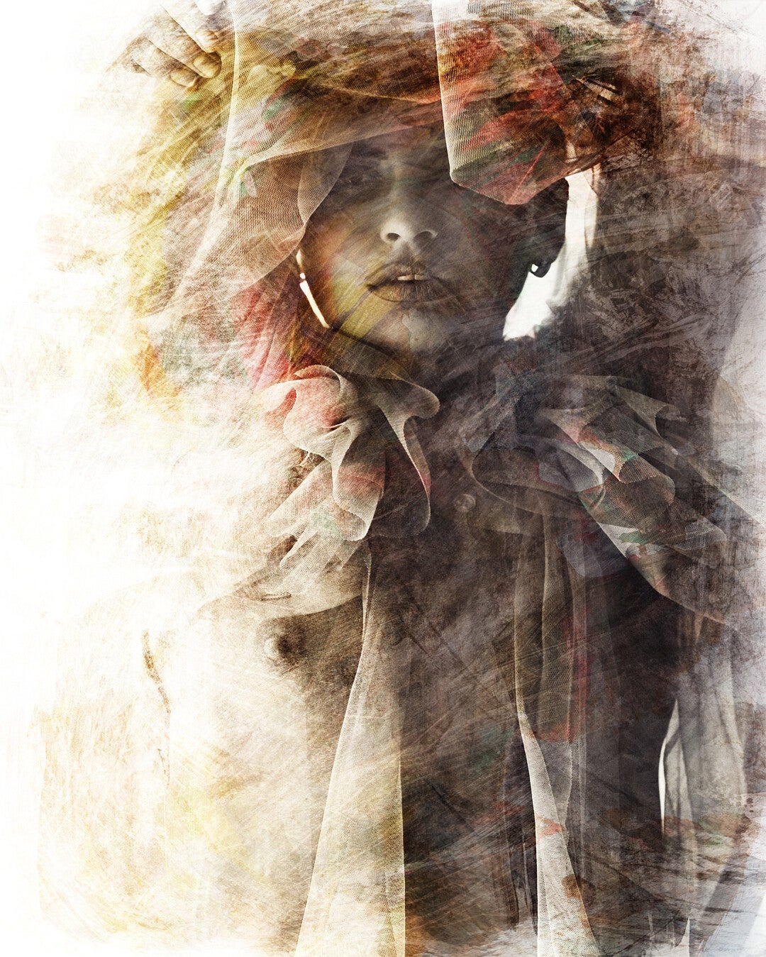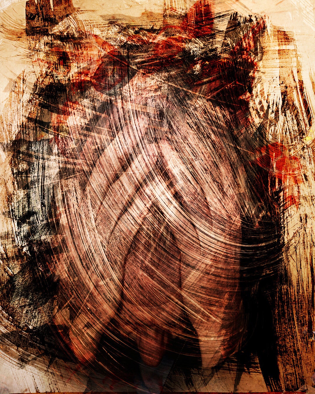 Dans cette série, je mêle photographie, IA artistique et matière picturale.